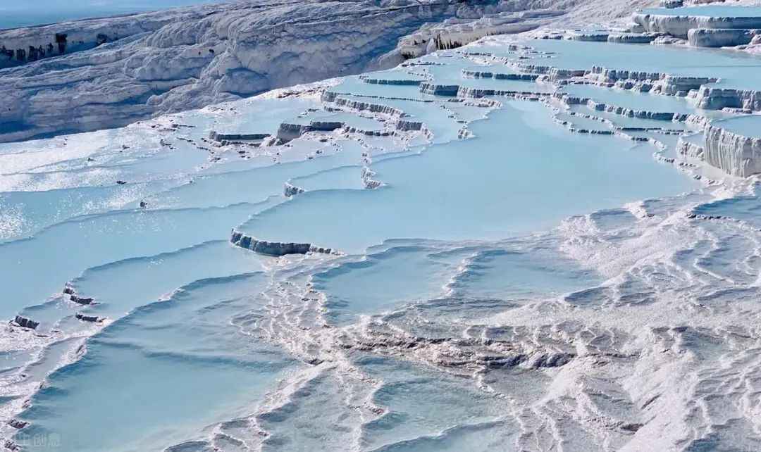 Pamukkale is located in the northern part of Denizli, Turkey. The hills formed by calcification resemble white cotton, layer upon layer, just like terraces paved with snow. It is so dreamlike and breathtaking that it makes tourists intoxicated.