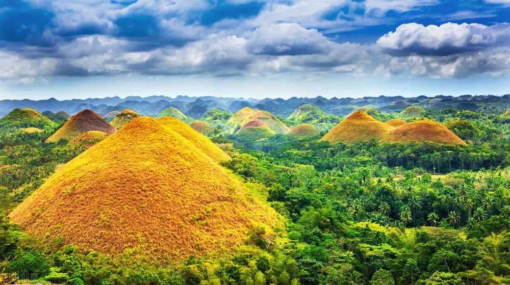 The Chocolate Hills are a natural wonder in the Philippines. They are composed of 1,268 conical hills. The height of the hills ranges from 40 to 120 meters, and their colors change with the seasons. They are light green in spring, dark green in summer, and turn brown when they dry up in the dry season.